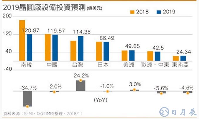對比之下,受到NAND Flash價格下跌、DRAM價格近期也出現(xiàn)松動等影響,連2年的 DRAM 盛世將結(jié)束,存儲器業(yè)者快速反應(yīng)市場情況,并減少資本支出,并暫緩所有已訂購設(shè)備出貨,使得2019年整體存儲器資本支出將年減19%,當(dāng)中,韓國存儲器雙雄三星及SK海力士大砍資本支出為2019年全球晶圓廠設(shè)備投資金額大減的重要關(guān)鍵所在。