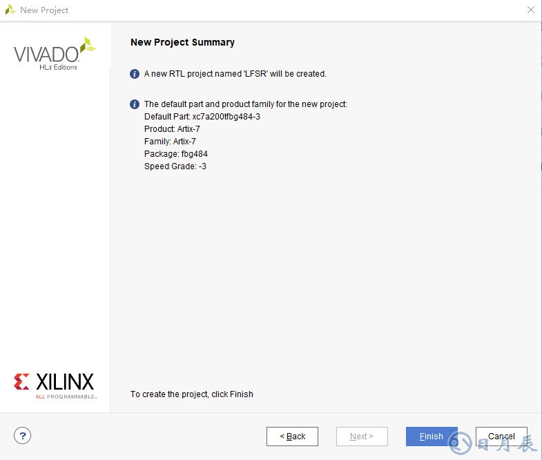 6. 確認整個工程信息后,點擊Finish,完成工程創(chuàng)建。