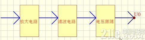 電路一般由放大電路,濾波電路,電壓跟隨組成,U0為模擬量輸出。