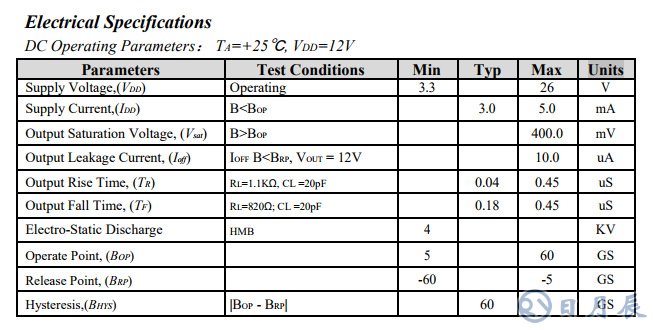 華芯包括在一個單一的硅芯片:電壓調(diào)節(jié)器,霍爾電壓發(fā)生器,小信號放大器,斬波穩(wěn)定,Schmitt trigger,上拉電阻輸出。先進的DMOS晶片制造工藝用于利用低壓要求、元件匹配、非常低的輸入偏移誤差和小元件幾何形狀。