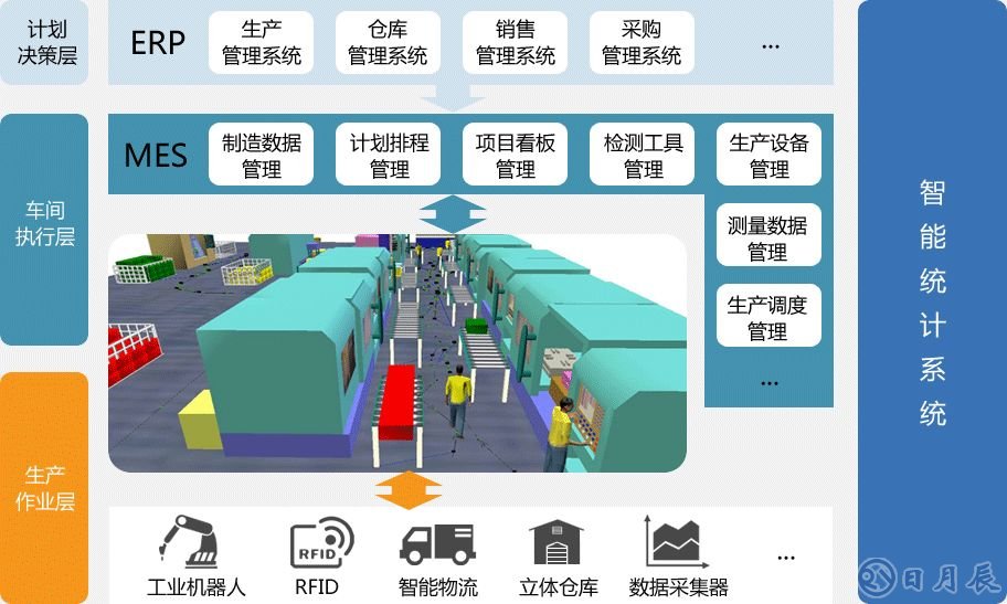 介于企業(yè)的“計劃層”和制造“設(shè)備層”之間,對企業(yè)生產(chǎn)計劃進行“再計劃”,“指令”生產(chǎn)設(shè)備“協(xié)同”或“同步“動作,對產(chǎn)品生產(chǎn)過程進行及時的響應(yīng),使用當(dāng)前確的數(shù)據(jù)對生產(chǎn)過程進行及時調(diào)整、更改或干預(yù)等處理。