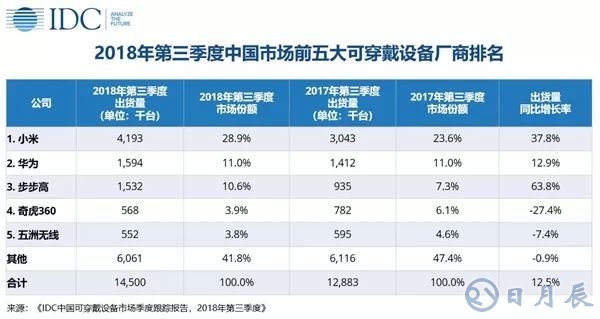 12月26日消息,根據(jù)IDC本周發(fā)布的《中國(guó)可穿戴設(shè)備市場(chǎng)季度跟蹤報(bào)告》,2018年第三季度中國(guó)可穿戴設(shè)備市場(chǎng)出貨量為1450萬(wàn)臺(tái),同比增長(zhǎng)12.5%。