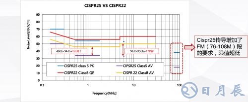 歷史上普遍接受的國際電磁干擾標(biāo)準(zhǔn)是CISPR-22,美國的電磁干擾標(biāo)準(zhǔn)是FCC,CISPR-22與FCC有所不同,但一般來說如果電源符合CISPR-22標(biāo)準(zhǔn),那么它也符合FCC標(biāo)準(zhǔn)。總之CISPR-22標(biāo)準(zhǔn)已經(jīng)成為全世界都遵守的基本標(biāo)準(zhǔn)。汽車上的電磁干擾標(biāo)準(zhǔn)是CISPR-25,相對CISPR22來說CISPR-25標(biāo)準(zhǔn)限制值更低并且額外對FM頻段做了很嚴(yán)的限制要求。具體傳導(dǎo)測試限制要求如圖2所示。