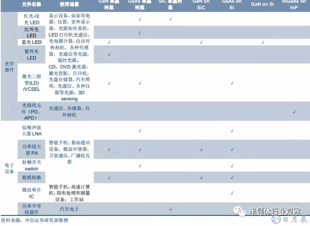 化合物半導(dǎo)體晶圓對(duì)應(yīng)下游應(yīng)用