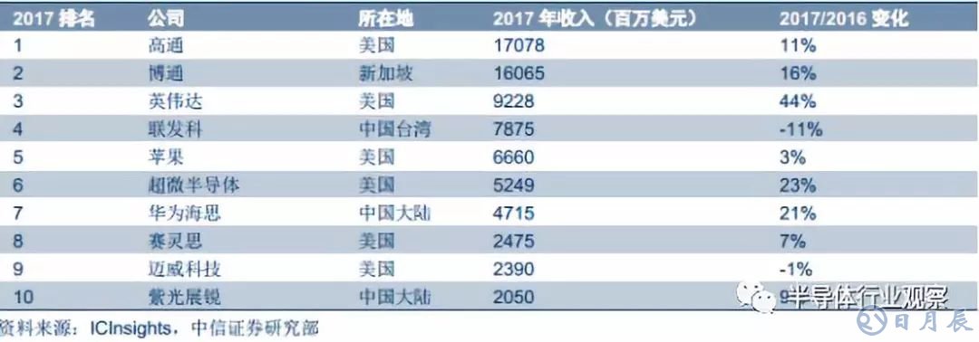 全球 IC 設(shè)計(jì)廠商 2017 年排名