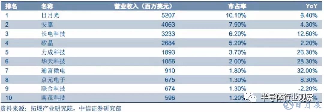 全球半導(dǎo)體封裝廠商 2017 年排名