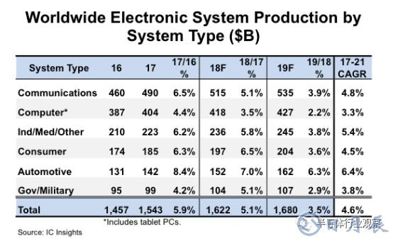 IC Insights市場分析師指出,今年汽車電子系統(tǒng)的銷售額預(yù)計(jì)將成長7%,達(dá)到1,520億美元,2019年將再成長6.3%,達(dá)到1,620億美元。該公司預(yù)計(jì),從2017年到2021年,汽車電子系統(tǒng)銷售將以6.4%的復(fù)合年成長率(CAGR)成長,成長幅度超過其他的主要電子系統(tǒng)類別。