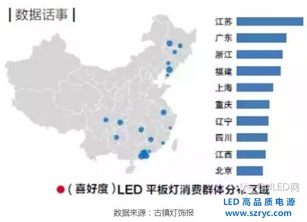 LED平板燈市場(chǎng)需求越來(lái)越大,從市場(chǎng)分布看,排名前三位的省份分別是江蘇、廣東、浙江,在各區(qū)域市場(chǎng)美譽(yù)度佳歐普、雷士、三雄·極光、特優(yōu)仕、松下等品牌,而當(dāng)?shù)叵M(fèi)者更多只認(rèn)產(chǎn)品和價(jià)格。