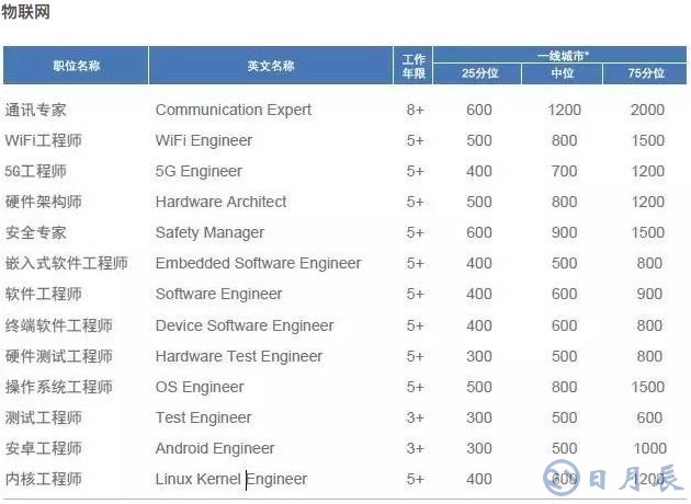 物聯(lián)網今年薪酬漲幅在10%-20%,跳槽漲幅30%左右,通信及操作系統(tǒng)軟件崗位漲幅比較大,可達40%以上;