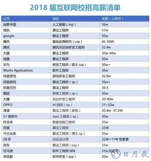 此前,網上一張關于2018年科技大廠校招薪資圖曾經廣為流傳,新智元也曾對此做過報道。其中,谷歌中國人工智能崗位的薪資,以年薪56萬人民幣的價格高居榜首。