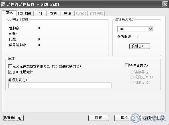 “元件的元件信息”對話框包括7個標(biāo)簽頁,分別是【常規(guī)】、【PCB封裝】、【門】、【管腳】、【屬性】、【連接器】、【管腳映射】。