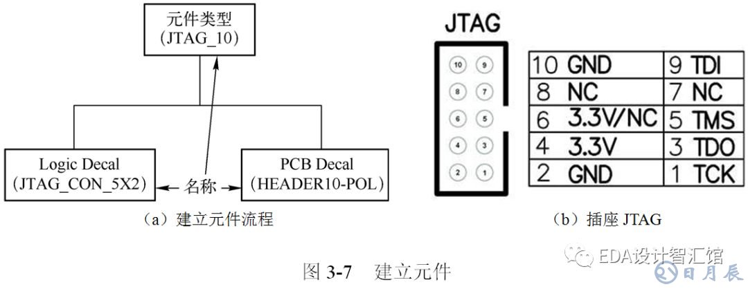 這里假設(shè)PCB Decal已經(jīng)建好了(PCB Decal名稱為HEADER10-POL)。以常用調(diào)試插座JTAG為例,如圖3-7所示。