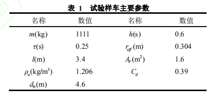 實(shí)驗(yàn)樣車(chē)各參數(shù)如表 1 所示: