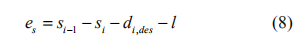 其中 si 代表第i 輛車(chē)與慣性參考點(diǎn)的距離,vi 、 ai 分別代表第i 輛車(chē)的速度和加速度, l 代表車(chē)身的長(zhǎng)度,則第 i 輛車(chē)與前車(chē)的車(chē)間間距誤差為: