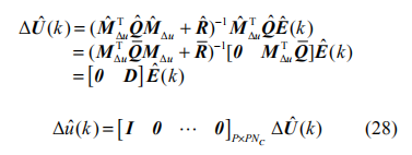 其中參數(shù)矩陣Φ,Γ,F,G 見(jiàn)[12],k時(shí)刻的預(yù)測(cè)控制輸出為: