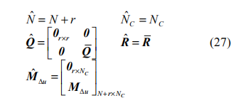 以上分析說(shuō)明,對(duì)于執(zhí)行器時(shí)延系統(tǒng),在傳統(tǒng)MPC 控制器基礎(chǔ)上,將參數(shù)按式(27)進(jìn)行修改,并以Δu(k-r) 作為 k 時(shí)刻的增量控制輸入即可。