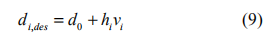 其中 di,des 是第i 輛車(chē)距前車(chē)的期望車(chē)間距離,本文采用固定車(chē)頭時(shí)距策略,有: