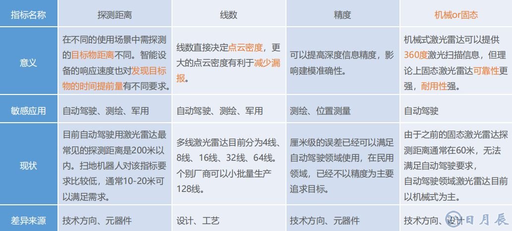 激光雷達模塊的關(guān)鍵技術(shù)如下表: