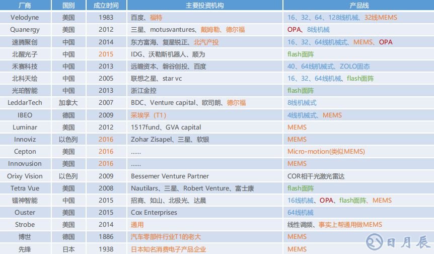 其中做機械式的有9家,做MEMS的有10家,做flash面陣的有5家,做OPA的有3家。