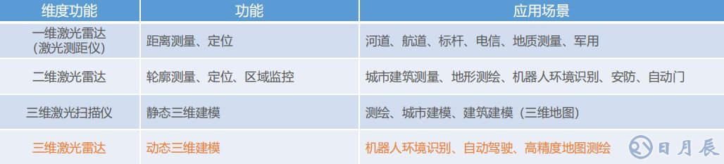 根據(jù)維度分類,激光雷達分為一維激光雷達、二維激光雷達、三維激光掃描儀和三維激光雷達。其中自動駕駛車輛中應用的就是三維激光雷達。