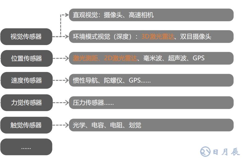 環(huán)境感知相關(guān)的傳感器不止激光雷達一種,上圖展示了相關(guān)類型,其中應用到自動駕駛汽車中的傳感器主要有激光雷達、毫米波雷達以及攝像頭等。