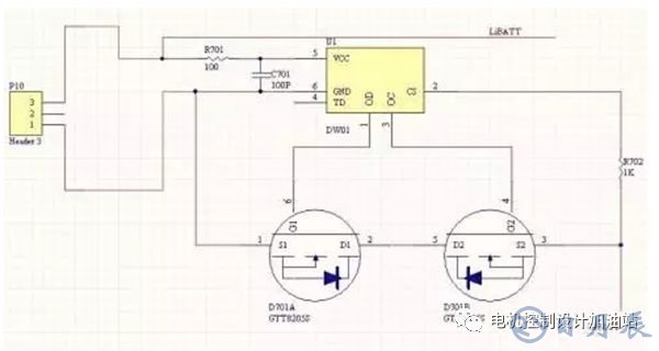 選擇芯片DW01 和GTT8205的組合,可以做到短路保護,過充過放電的保護