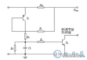 電路正常工作時,負載電流IL流過電阻Rsc產(chǎn)生的壓降不足以使S1導通,由于S1在截止時IC1=0, 電容器C1處于未充電狀態(tài),因此晶體管S2也截止。如果負載側(cè)電流增加,使IL達到一個設定的值,使得ILRsc=Vbe1+Ib1R1,則S1導通,使 電容器C1充電,其充電時間常數(shù)τ= R2C1,C1上充滿電荷后的電壓是VC1=Ib2R4+Vbe2。在電路檢測到有過流發(fā)生時,為使電容器C1能夠快速放電,應當選擇R4。