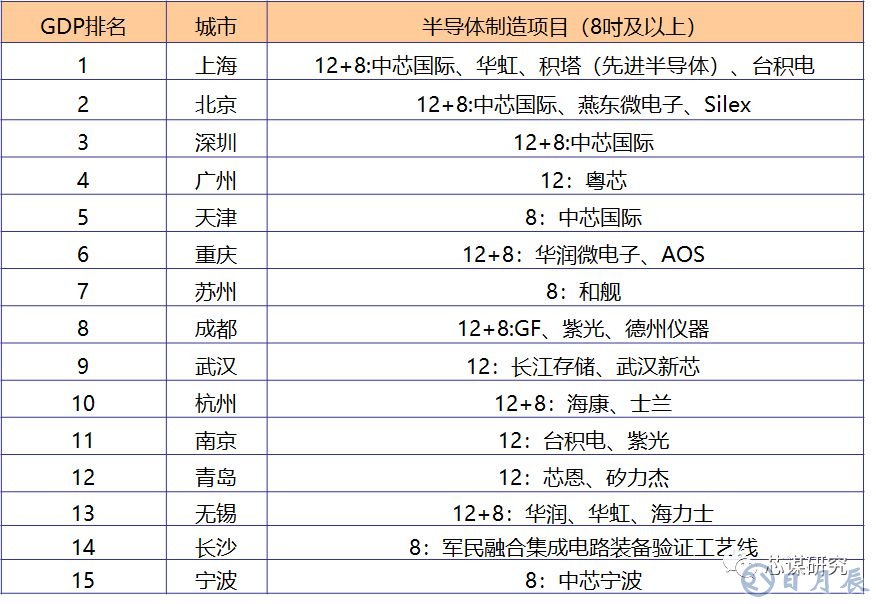 2018年上半年全國GDP前十五名城市半導體制造線概況