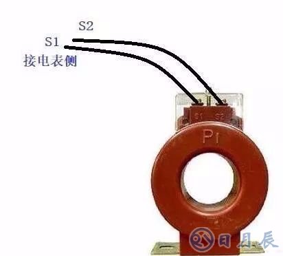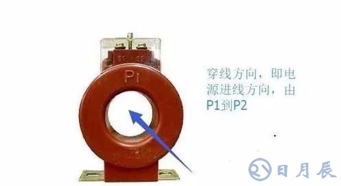 先將三個互感器穿在三根火線A相B相C相上,方向是沿著電流的進線方向,對應(yīng)互感器從P1到P2穿過,如下圖所示,P1,P2互感器有標(biāo)識。