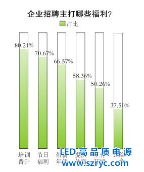 對應聘者來說,“五險一金”、“帶薪年假”、“提供住宿”、“工作環(huán)境”、“培訓晉升”等福利待遇,均是他們關心的內容,這或將直接影響到其日后的工作和生活。那么,照明企業(yè)在招聘過程中主要提供哪些福利待遇,以吸引應聘者注意呢?
