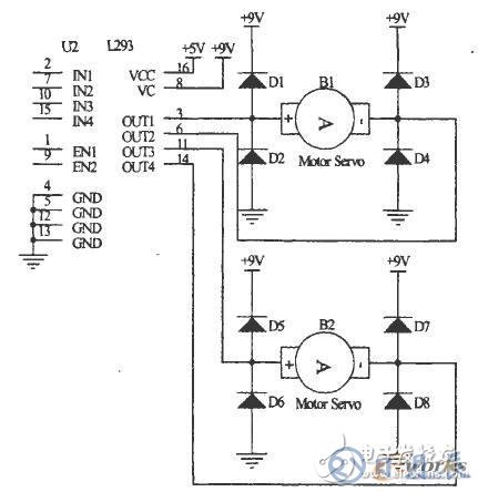圖4 L293電機(jī)驅(qū)動(dòng)電路