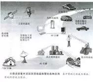 除了手機通信以外,還有其它的無線通信手段(見圖20),包括:衛(wèi)星傳輸高清晰度電視、衛(wèi)星間通訊、多點視頻通訊、無線局域網(wǎng)、交通工具之間的通訊、以及防撞雷達(dá)等。它們的工作頻率在微波波段,從幾個GHz到100GHz。