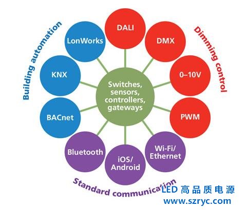 一項主導(dǎo)的全球標(biāo)準(zhǔn)缺少,有三個主要原因。第一個原因是主要照明控制技術(shù)和/或主要LED驅(qū)動器調(diào)光信號因地區(qū)而異。例如,0-10V是北美主要的LED驅(qū)動器調(diào)光信號,而DALI(數(shù)字可尋址照明接口)和脈寬調(diào)制(PWM)分別在歐洲和日本占主導(dǎo)地位。從樓宇自動化系統(tǒng)的角度來看,雖然BACnet似乎是一個主導(dǎo)的全球協(xié)議,但KNX在歐洲非常受歡迎。因此,照明OEM廠商為了適應(yīng)各個地區(qū)的終端客戶,很難依靠單一技術(shù)。
