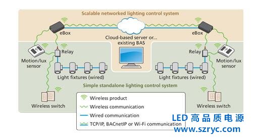 一些終端客戶,如建筑業(yè)主和建筑經(jīng)理,不想要并入一套BAS或集中照明控制系統(tǒng),這些系統(tǒng)可以通過計算機或移動設(shè)備來控制、設(shè)定和監(jiān)控。相反,這些終端客戶更愿意將照明控制解決方案限制在LED驅(qū)動器的開關(guān)、傳感器和控制器(通常為0-10V繼電器和DALI控制器)上,不需要網(wǎng)關(guān)或復(fù)雜的網(wǎng)絡(luò)設(shè)備。 換句話說,這些終端客戶希望在每棟建筑物內(nèi)的每個房間提供簡單的獨立照明控制系統(tǒng)。