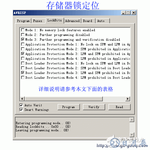 Notes:1.在編程鎖定位前先編程熔絲位。2.“1”表示未被編程,“0”表示被編程。。
