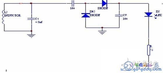 接收部分由大電感線圈、整流肖特基二極管構(gòu)成。