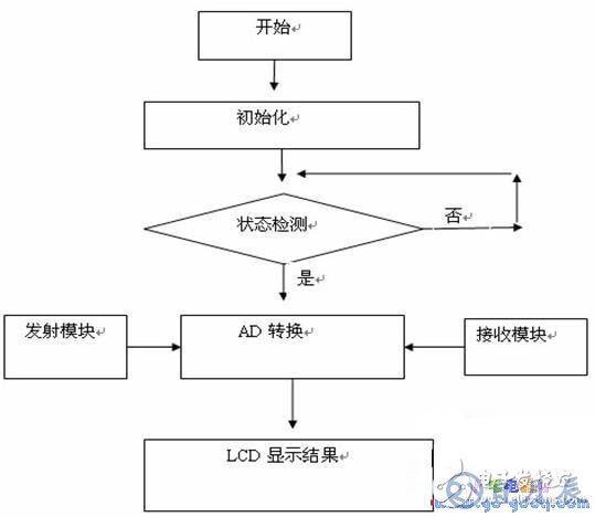 比較上述方案,震蕩電路結(jié)構(gòu)簡單易于實(shí)現(xiàn),檢測部分AD芯片價(jià)格合適,整個(gè)電路容易實(shí)現(xiàn),所以選擇方案1。系統(tǒng)整體框圖見圖1。