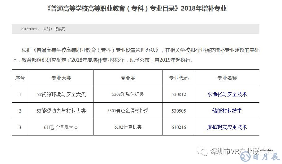 9月14日,教育部正式公布: 在《普通高等學(xué)校高等職業(yè)教育(專科)專業(yè)目錄》中設(shè)置“虛擬現(xiàn)實(shí)應(yīng)用技術(shù)”專業(yè),從2019年開始實(shí)行。這意味著,考生可以在2019年正式報考該專業(yè)。