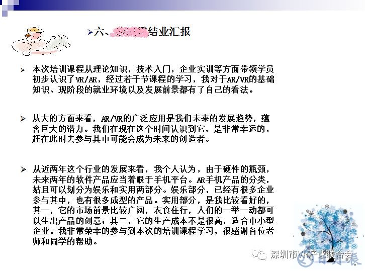 在培訓(xùn)結(jié)束后,學(xué)員們還對過去的學(xué)習(xí)進(jìn)行總結(jié)匯報。有希望創(chuàng)業(yè)的學(xué)員表示,通過此次培訓(xùn)認(rèn)識到AR行業(yè)前景無限,希望通過進(jìn)一步提高自己的技術(shù)水平,為行業(yè)發(fā)展添磚加瓦。