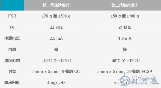 表2. 第一代和第二代MEMS加速度計針對狀態(tài)監(jiān)控的關鍵規(guī)格比較