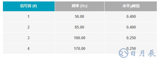 在振動測試儀上重建了一個實際場景,例如在基于振動的狀態(tài)監(jiān)控中所述的場景,以便利用已知激勵信號比較器件。本例展示了一臺以5100 rpm (85 Hz)運轉的汽輪機和一臺未對準的3000 rpm (50 Hz)同步發(fā)電機的振動水平。該場景說明的是采用隨機振動測試模式時,振動系統(tǒng)經編程所產生的頻率和振幅。表1列出了兩個器件在目標頻率的振幅測量結果。