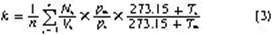 式中ki為第i流量檢定點(diǎn)的儀表系數(shù),m-3; Nij為第i流量檢定點(diǎn)第j次檢定被檢流量計(jì)的累計(jì)脈沖數(shù); Vij為第i流量檢定點(diǎn)第j次檢定鐘罩的體積量,即不同檢定點(diǎn)鐘罩的定容體積量,在檢定前輸入,m3; PS和Tm為檢定時(shí)間內(nèi)鐘罩處和流量計(jì)的平均絕對(duì)壓力,Pa;TS和Tm為鐘罩處和流量計(jì)的平均溫度值,℃??捎?jì)算流量計(jì)的儀表系數(shù)k為: