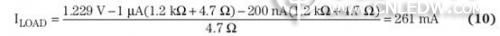 電路的目標(biāo)負(fù)載電流為 260 mA。正如我們所看到的那樣,一旦組件理論值被方程式 10中的有效值代替,它們引起的誤差將遠(yuǎn)多于保護(hù)電路本身帶來(lái)的誤差。