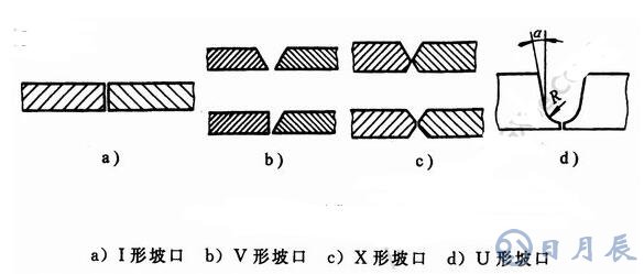 焊接接頭的坡口形式很多。焊條電弧焊焊縫坡口的基本形式和尺寸詳見(jiàn)GB985—88,埋弧焊焊縫坡口的基本形式詳見(jiàn)GB986—88。焊接接頭的基本坡口形式有I形坡口、V形坡口、X形坡口和U形坡口,見(jiàn)下圖。其它類型的坡口可在基本坡口形式上發(fā)展起來(lái)。
