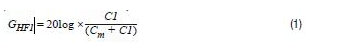 在電子表格程序中打開保存的數(shù)據(jù)文件,滾動至接近高頻(》1 MHz)數(shù)據(jù)的末尾部分,其衰減電平基本是平坦的。記錄幅度值為GHF1(單位:dB)。在已知GHF1和C1的情況下,我們可以使用以下公式計算Cm。記下Cm值,在下一步測量各種二極管PN結(jié)的電容時,我們需要用到這個值。
