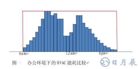 中國(guó)在以上標(biāo)準(zhǔn)的制定中,室內(nèi)CO2的濃度始終是要求低于1000ppm,而平時(shí)大氣中CO2的濃度一般維持在400ppm注[1]左右。所以,空氣質(zhì)量的監(jiān)控離不開(kāi)高精度CO2傳感器的應(yīng)用;另外,暖通風(fēng)系統(tǒng)的節(jié)能實(shí)現(xiàn),也同樣離不開(kāi)CO2傳感器的應(yīng)用,即當(dāng)前稱(chēng)之為按需控制的通風(fēng)系統(tǒng)(DCV:Demand Controlled VentilaTIon)。因?yàn)镈CV系統(tǒng)通過(guò)CO2傳感器,可以實(shí)時(shí)監(jiān)測(cè)室內(nèi)的CO2濃度值,并適時(shí)地根據(jù)當(dāng)前的CO2濃度導(dǎo)入室外的新鮮空氣,而不必一直保持新風(fēng),避免了無(wú)謂的能耗?,F(xiàn)在就此簡(jiǎn)單比較一下基于DCV(藍(lán)色部分)的和固定流量(紅色框)的HVAC間的能耗差異。如圖一: