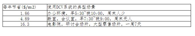 表二:DCV與固定新風(fēng)量控制的HVAC費(fèi)用節(jié)省按照面積平攤計(jì)算