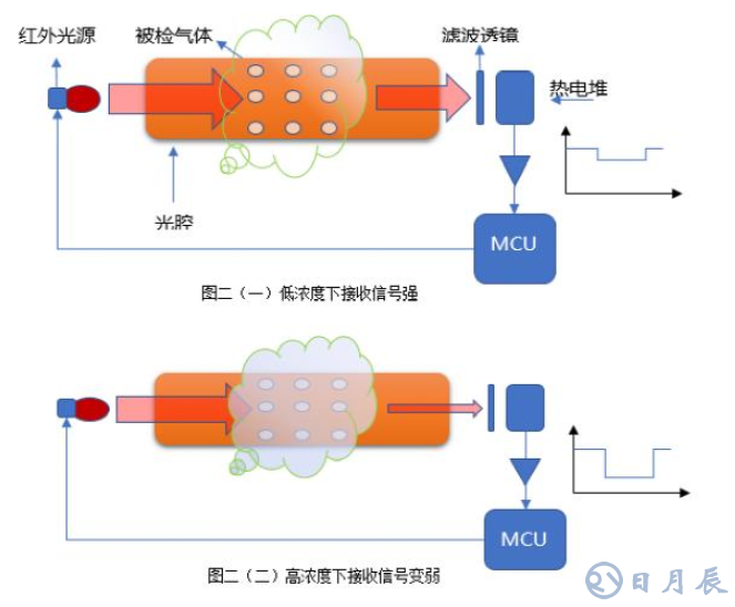 ·最后與濾波透鏡組合一起的熱電堆僅能接收到被CO2吸收剩余部分的窄帶紅外光能量;