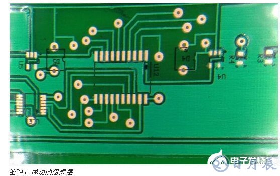 阻焊層是給電路板加一層專門(mén)可觸摸的層,它也能使得精細(xì)間距的表貼元件焊接起來(lái)更加容易。市場(chǎng)上有一種產(chǎn)品叫Dynamask 5000。它基本上是一種即剝即貼的環(huán)氧樹(shù)脂薄膜,用起來(lái)非常順手。遺憾的是,在美國(guó)市場(chǎng)上沒(méi)有賣的,只能通過(guò)海外銷售商采購(gòu)。