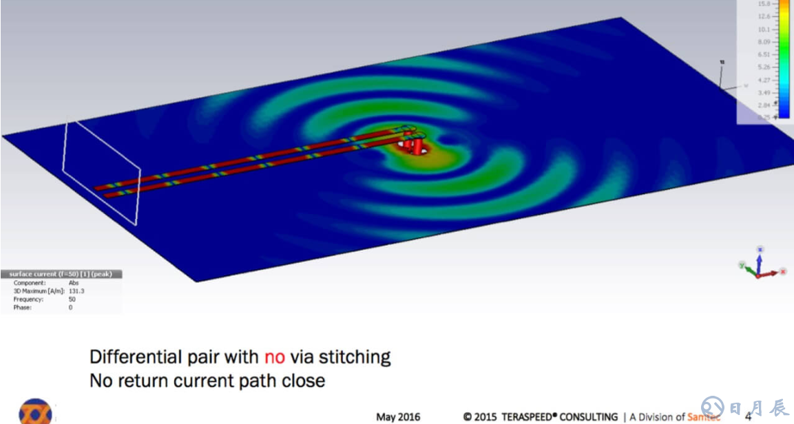 視頻中有關(guān)于差分線信號回流的3D仿真講解老wu覺得很不錯,之前看差分對的介紹文章,有說到應(yīng)用差分線的優(yōu)勢,就是差分線對之間可以彼此實現(xiàn)對方信號的回流而不需要參考平面,但視頻中通過3D仿真講解了差分線回流的情況。